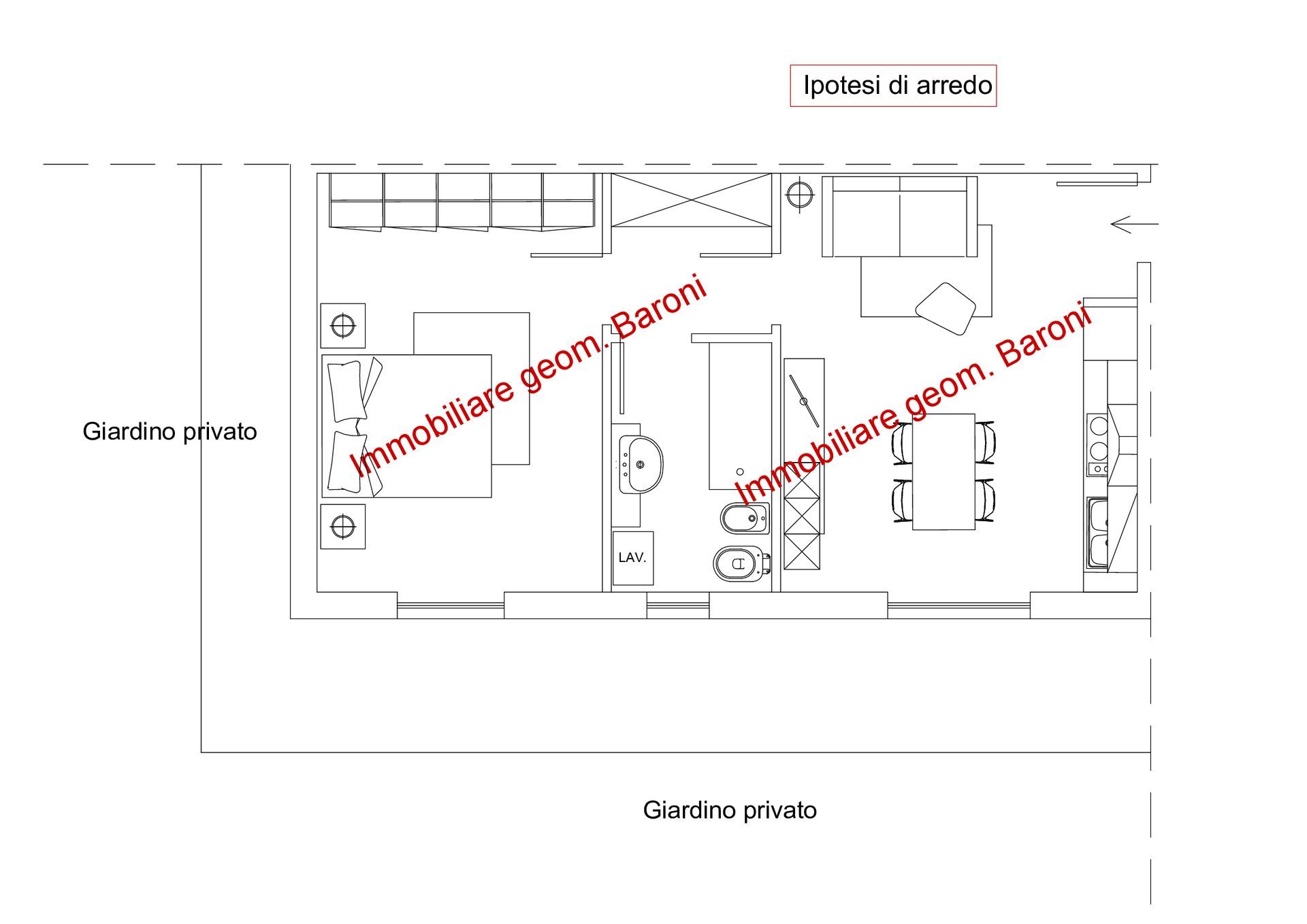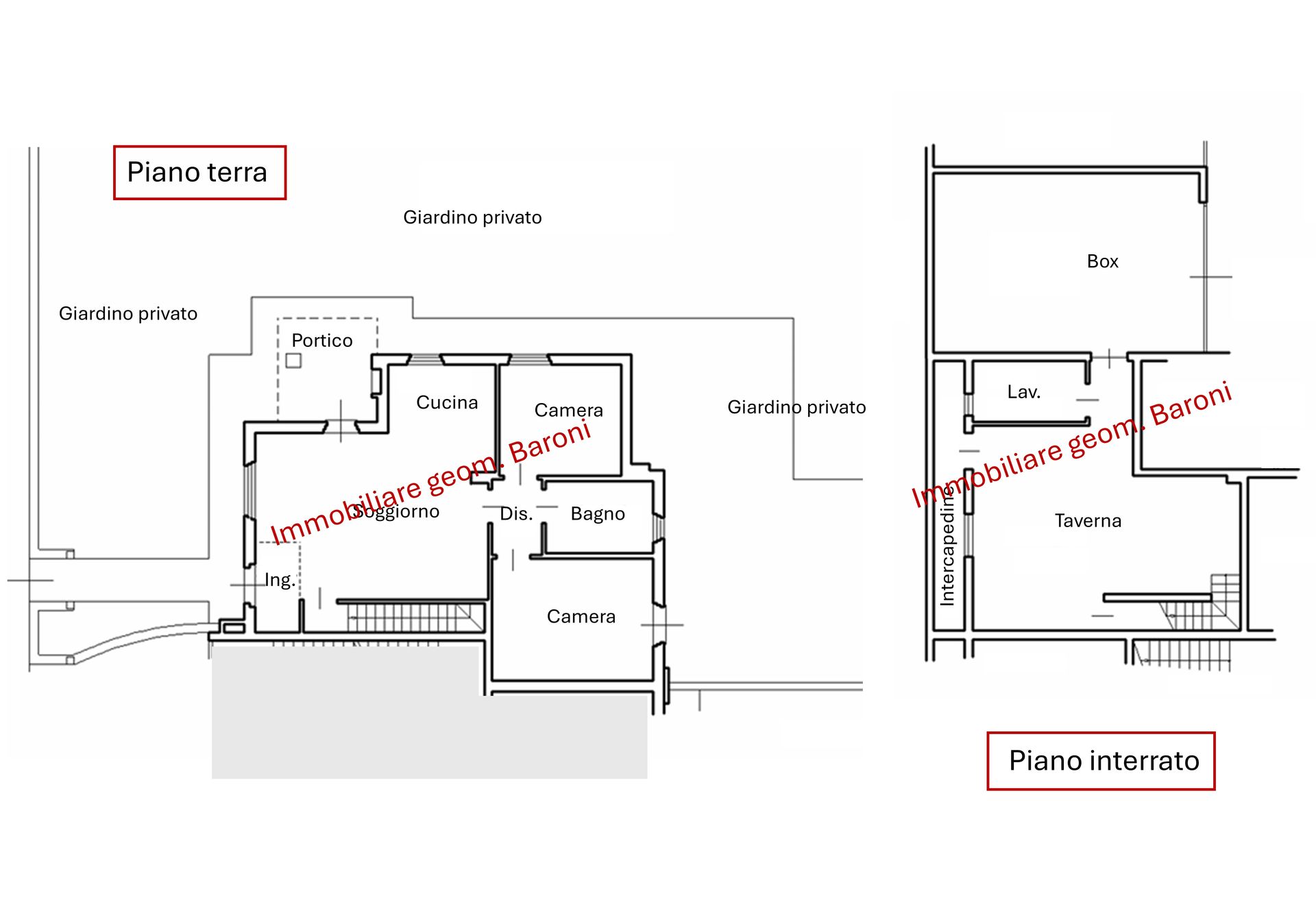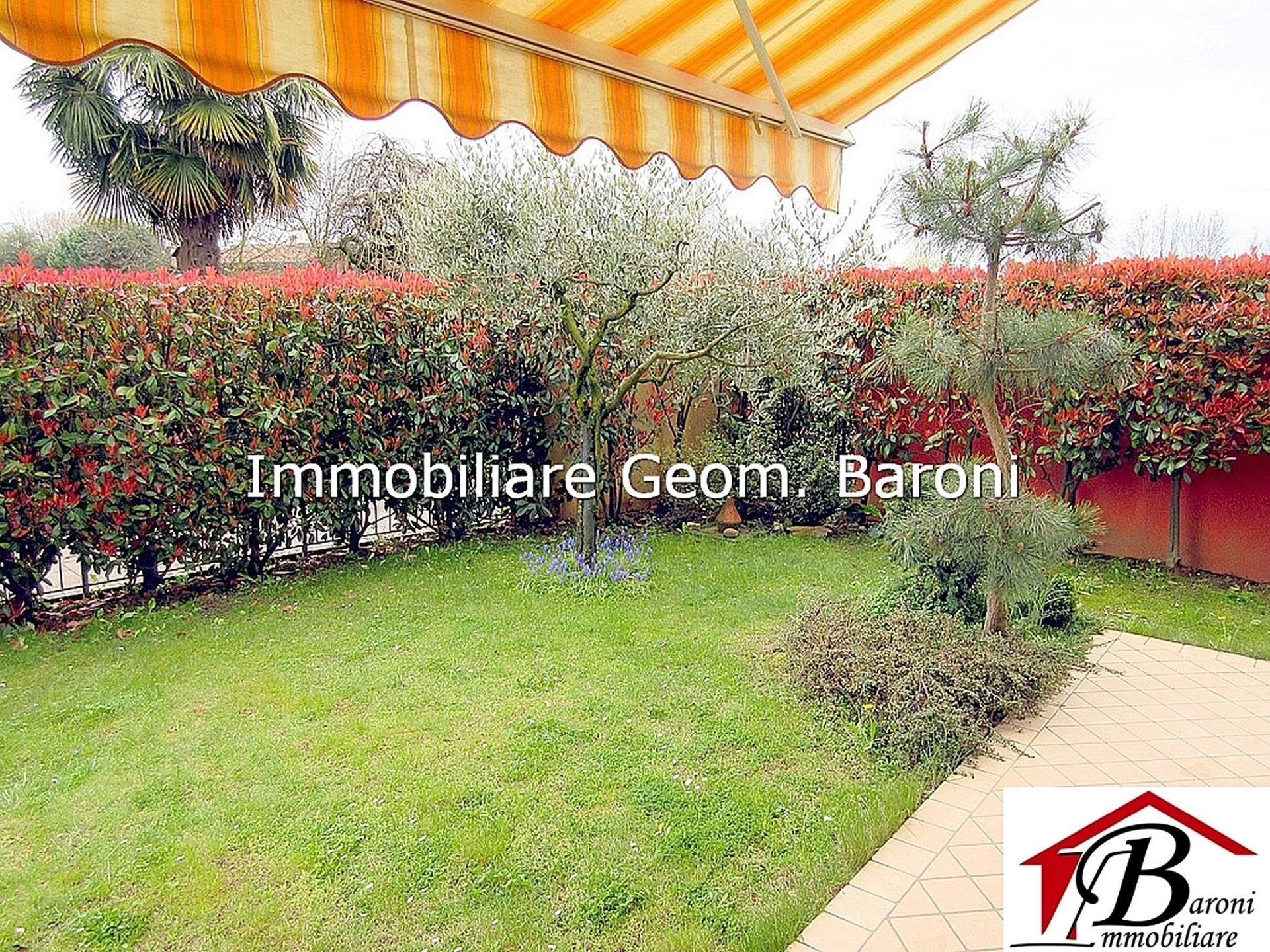 Trilocale in villetta, piano terra, in eccellenti condizioni, con: ingresso pedonale indipendente, circa 450mq. di giardino privato, favolosa taverna collegata da scala interna, lavanderia e doppia autorimessa in larghezza.