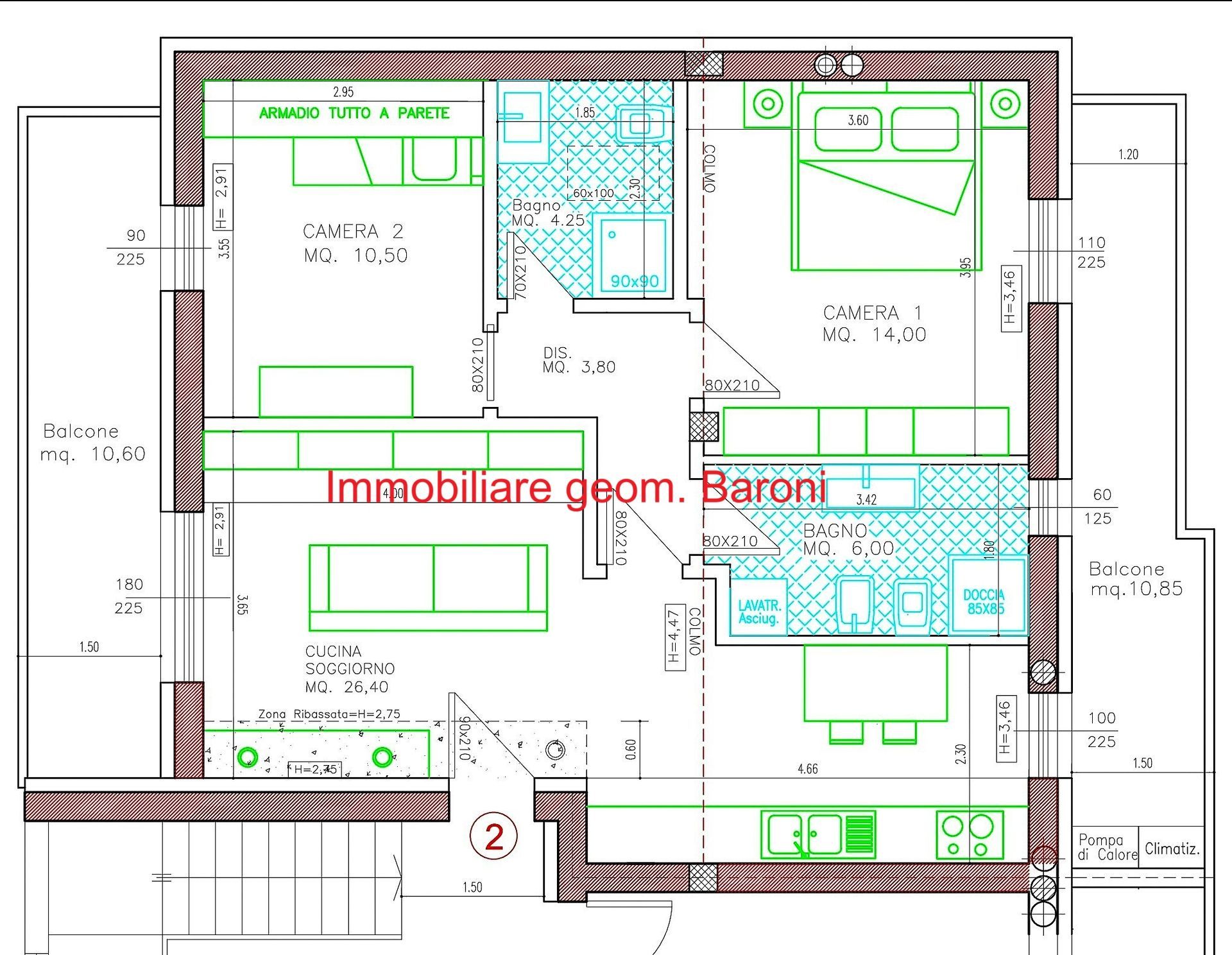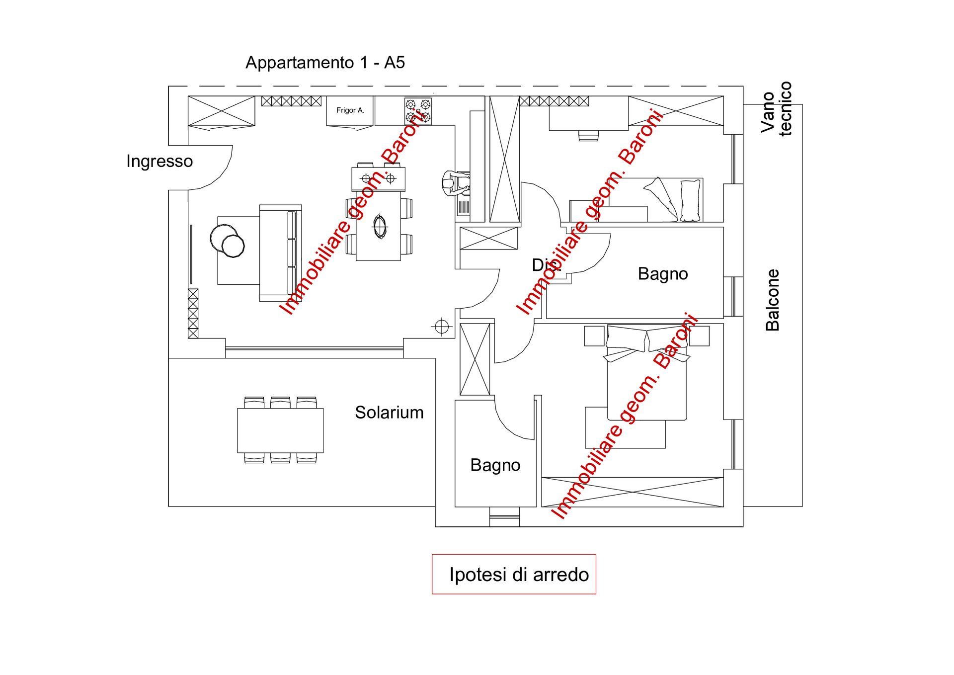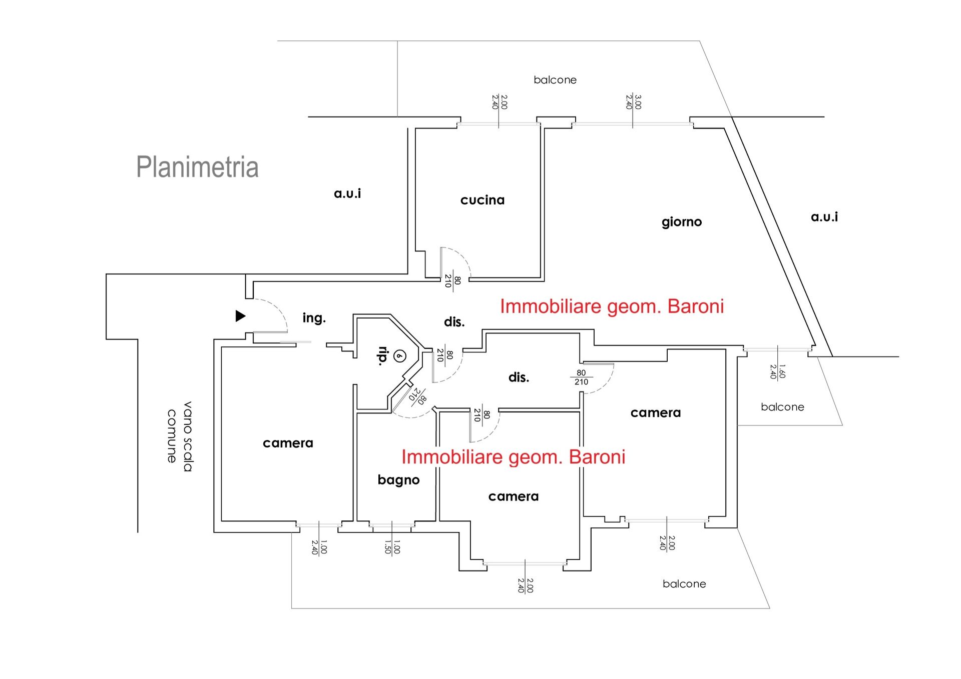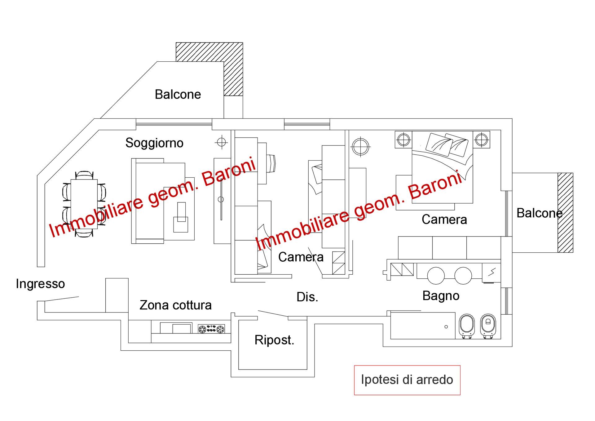 Ingresso, soggiorno-cottura, disimpegno, ripostiglio, due camere, bagno e due balconi;