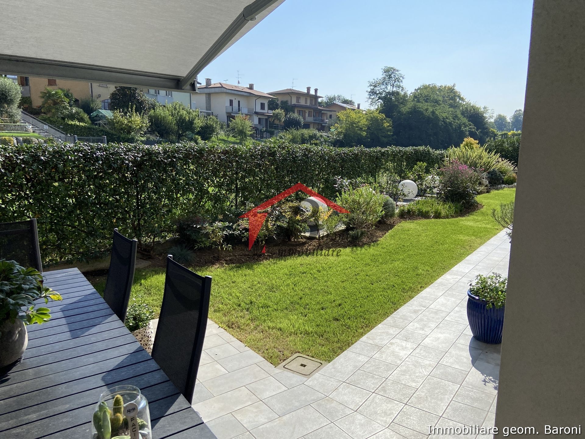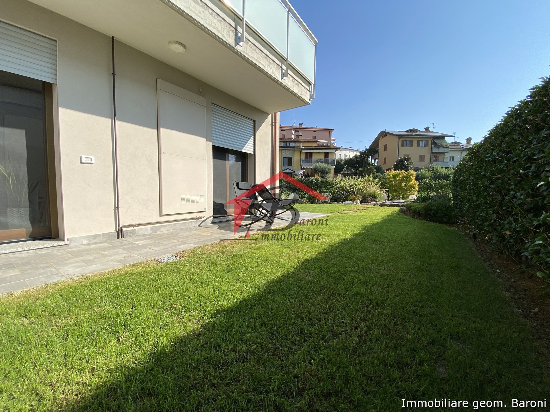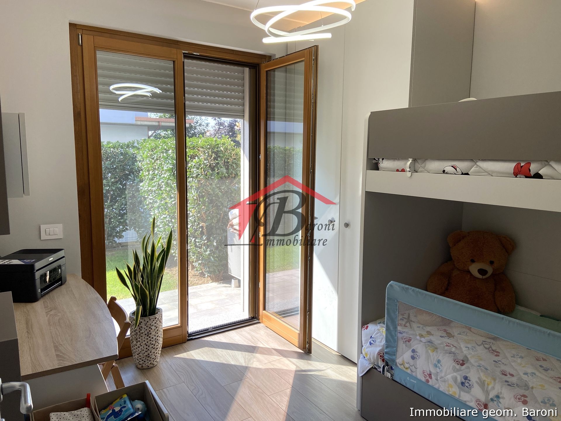 Trilocale, piano terra, circa 98 mq., recentissimo, full-optional, con spazioso giardino privato su due lati e doppia autorimessa in larghezza.