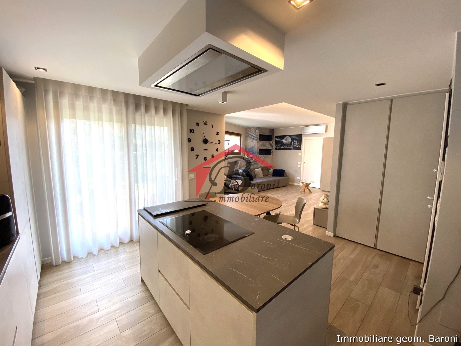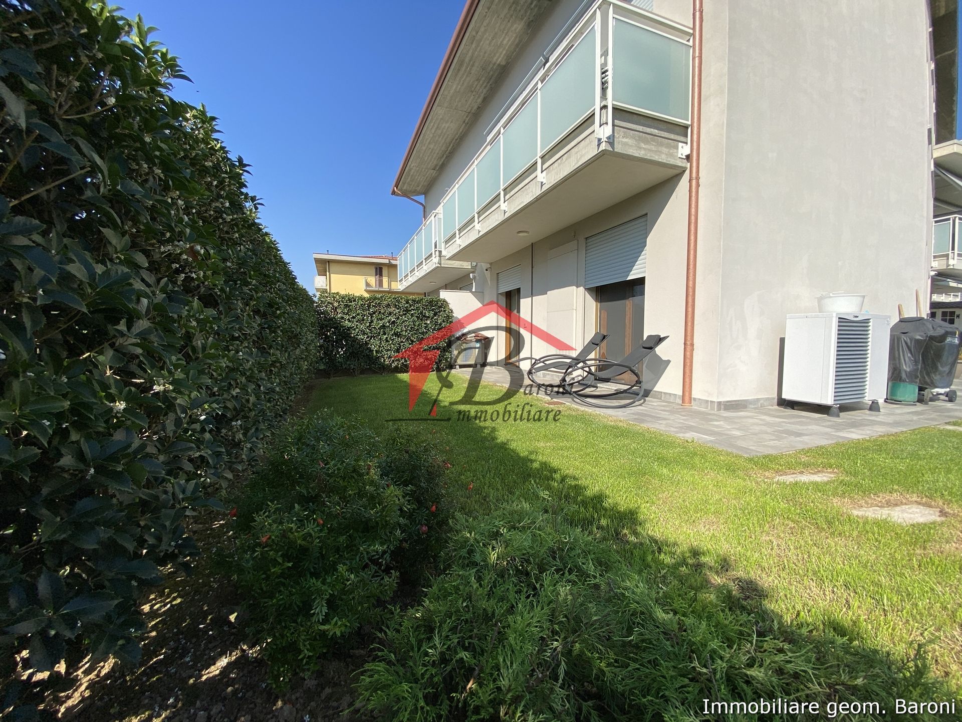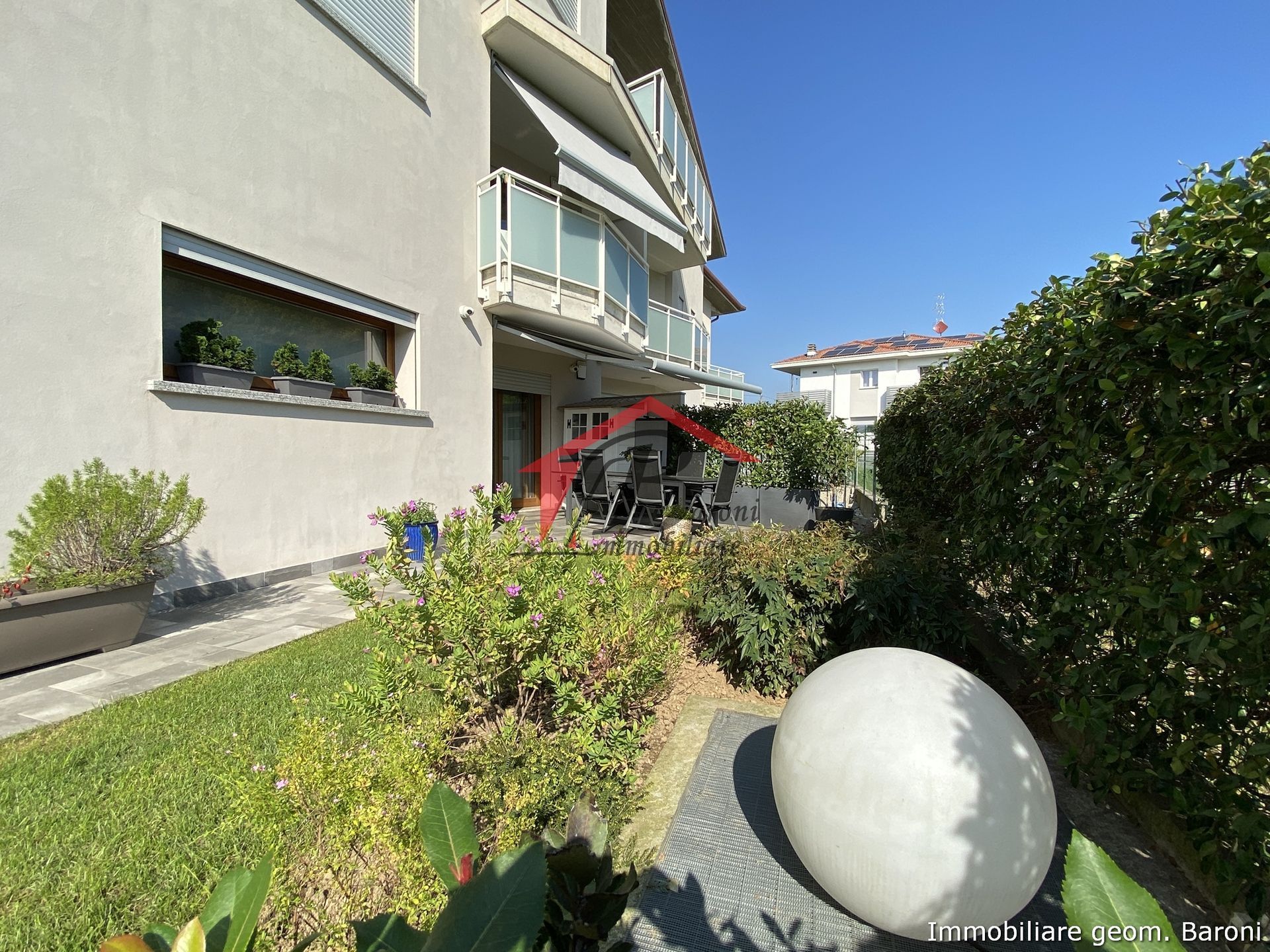 Trilocale, piano terra, circa 98 mq., recentissimo, full-optional, con spazioso giardino privato su due lati e doppia autorimessa in larghezza.