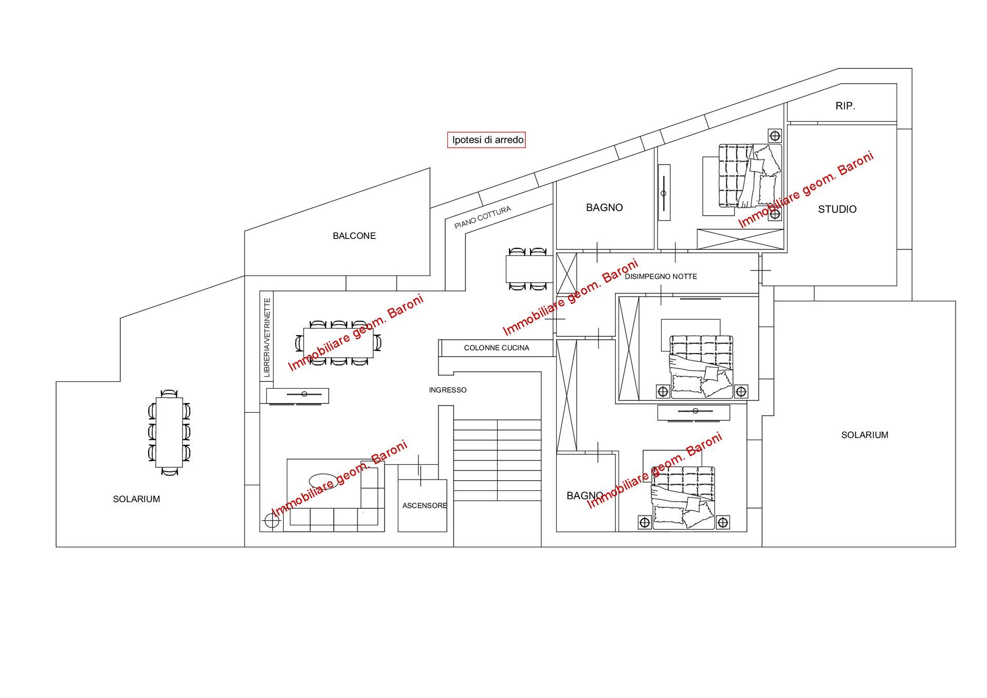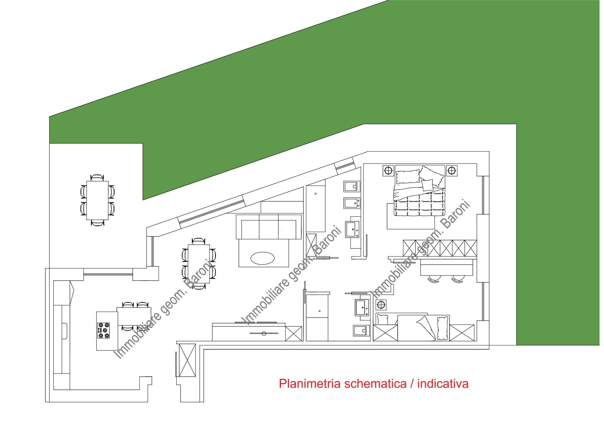 Ingresso pedonale indipendente, area estera in proprietà, favoloso solarium, balcone e grande mansarda collegata da scala interna;