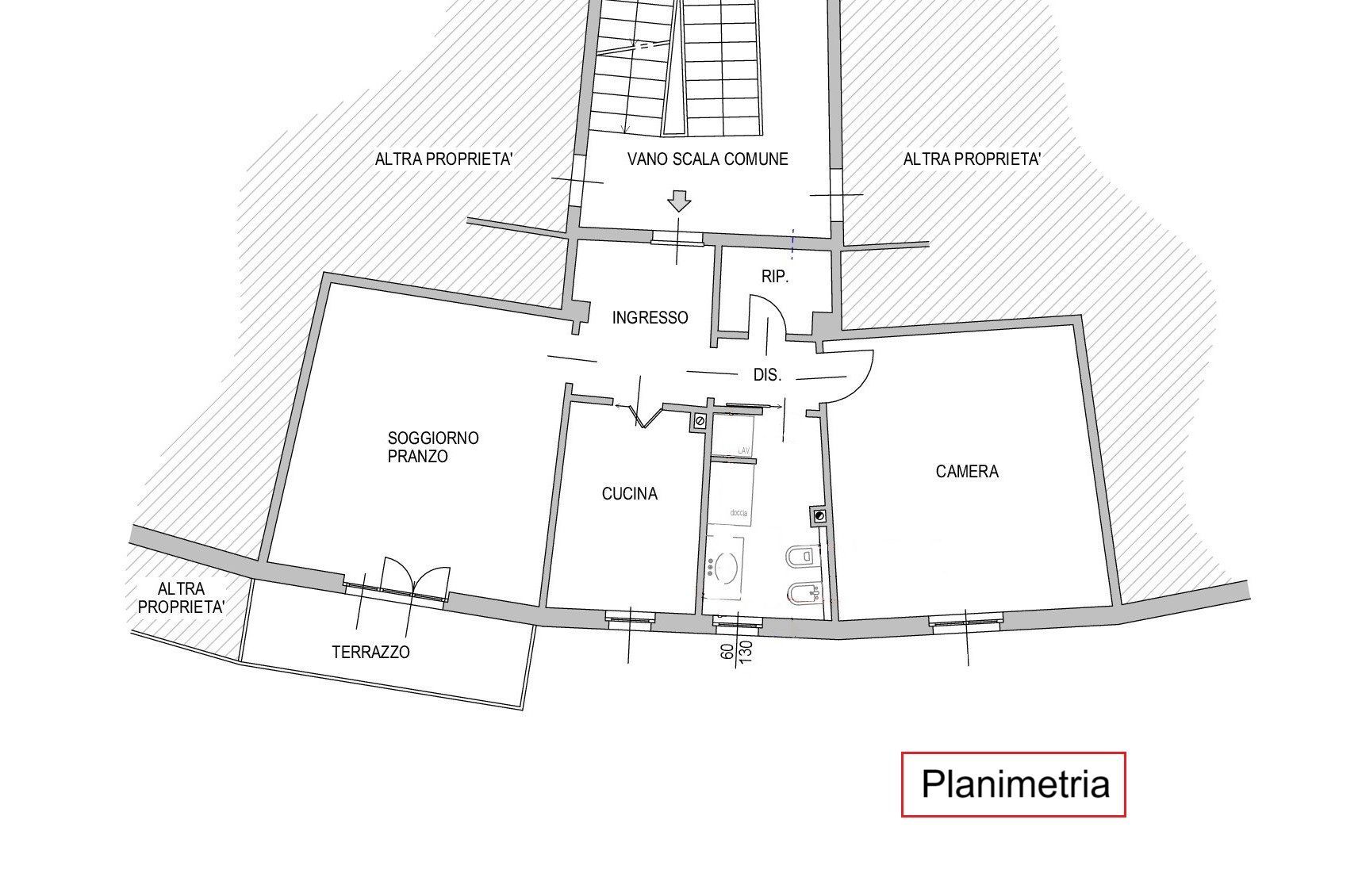 Ingresso, soggiorno, cucina, disimpegno, ripostiglio, bagno e camera matrimoniale.