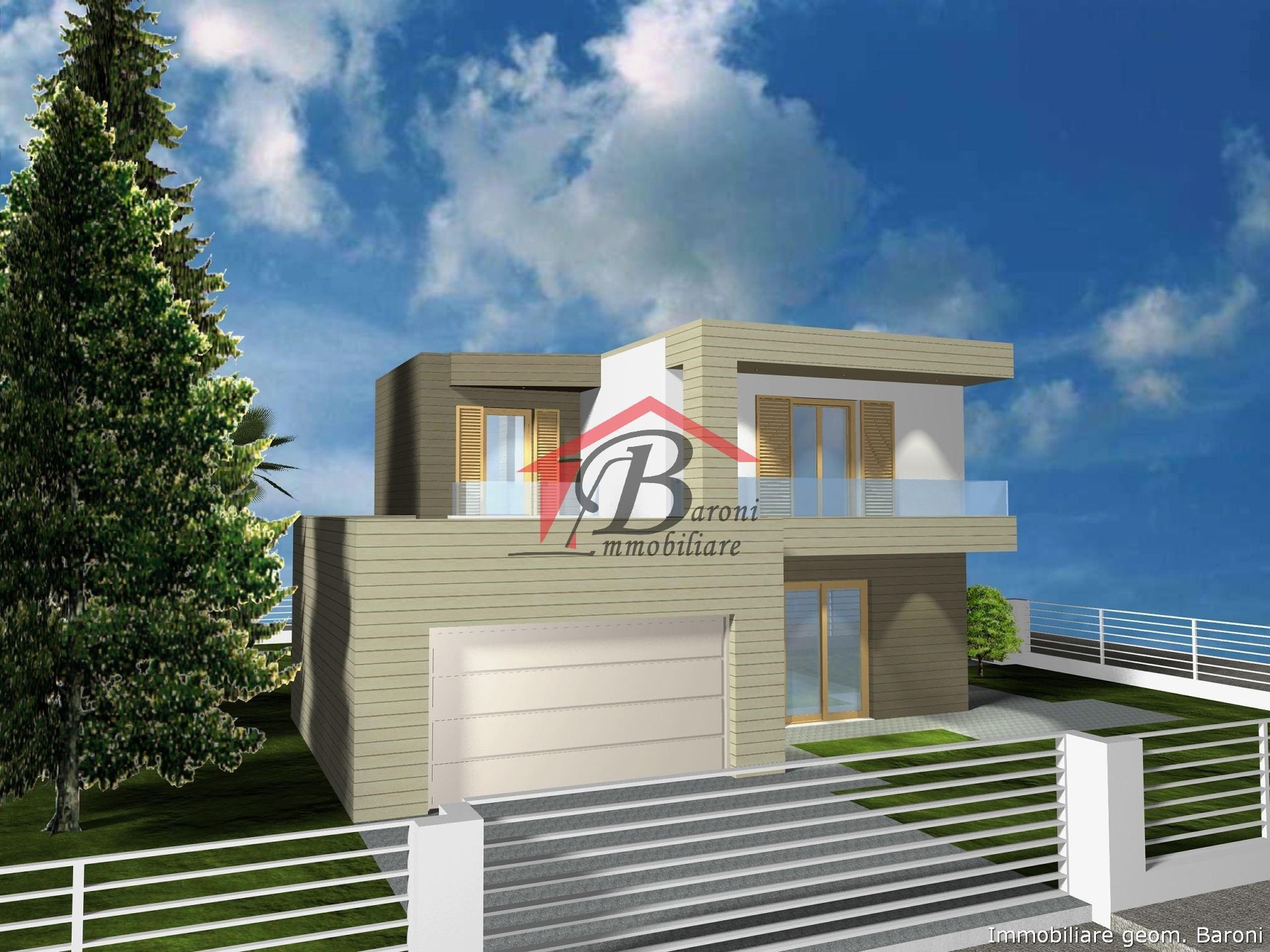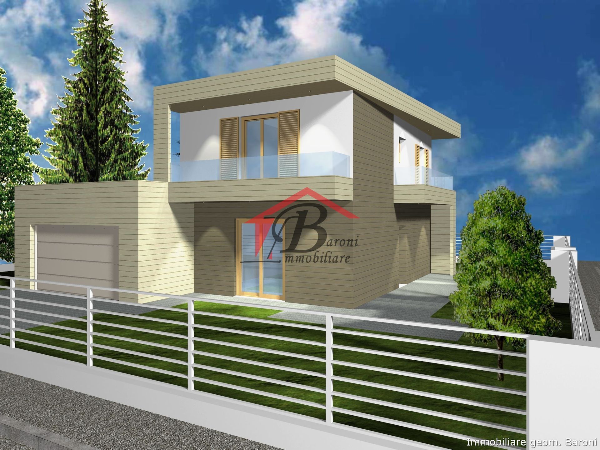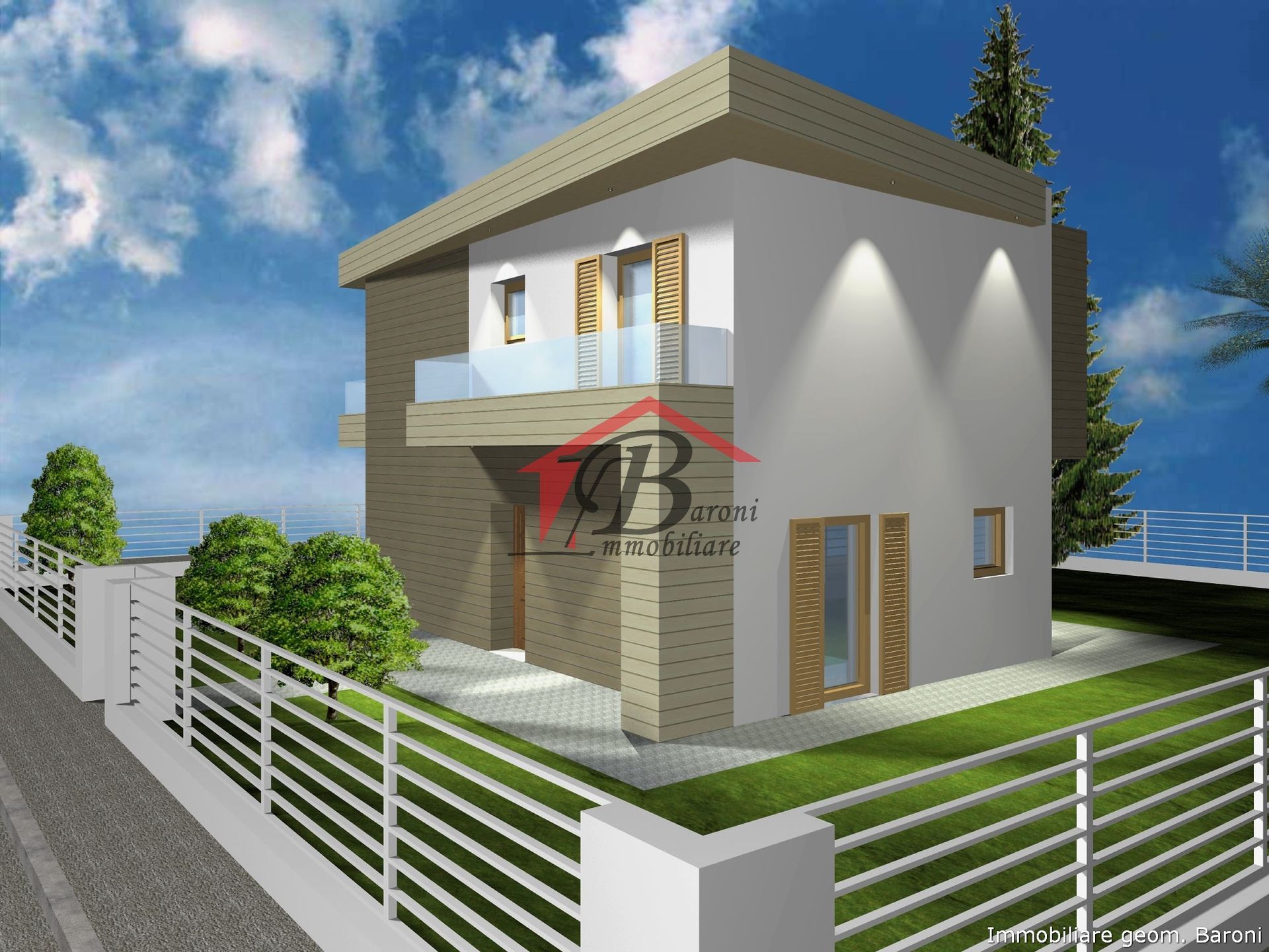 Villa singola, ipotesi di prossima realizzazione, disposta su due livelli, portico, ampio giardino privato, balconi vivibili e
