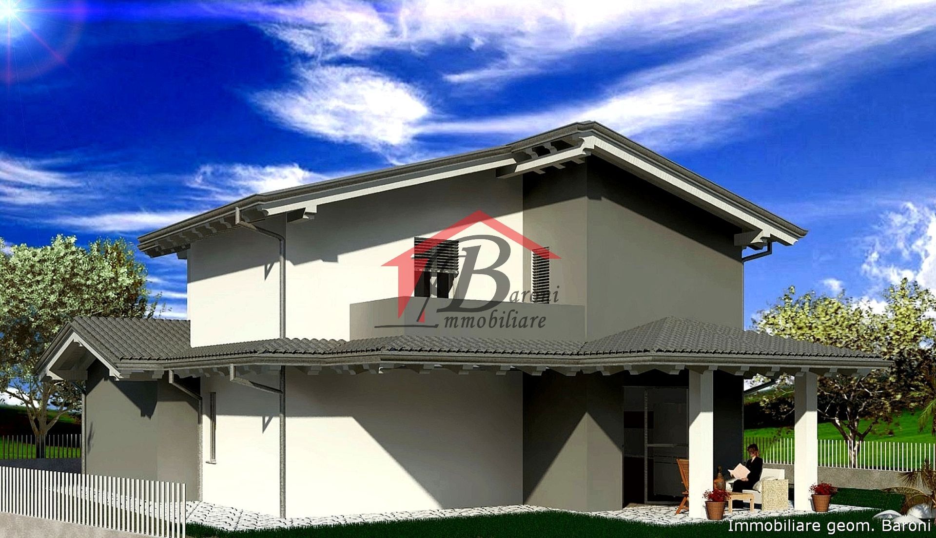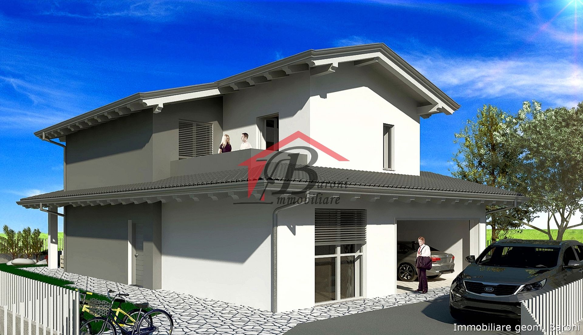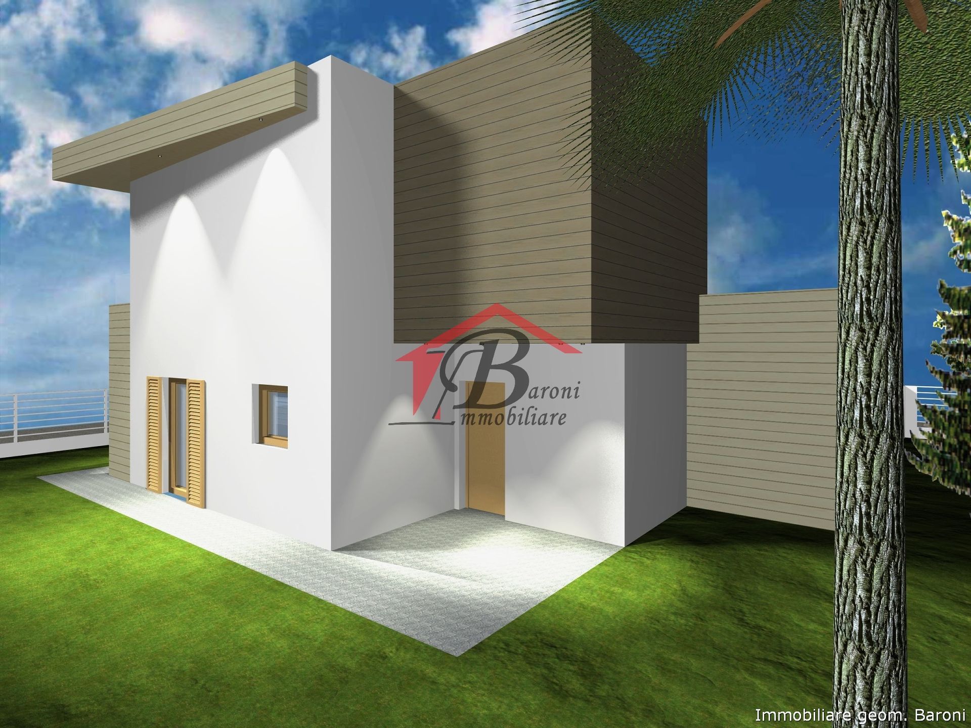 Villa singola, ipotesi di prossima realizzazione, disposta su due livelli, portico, ampio giardino privato, balconi vivibili e