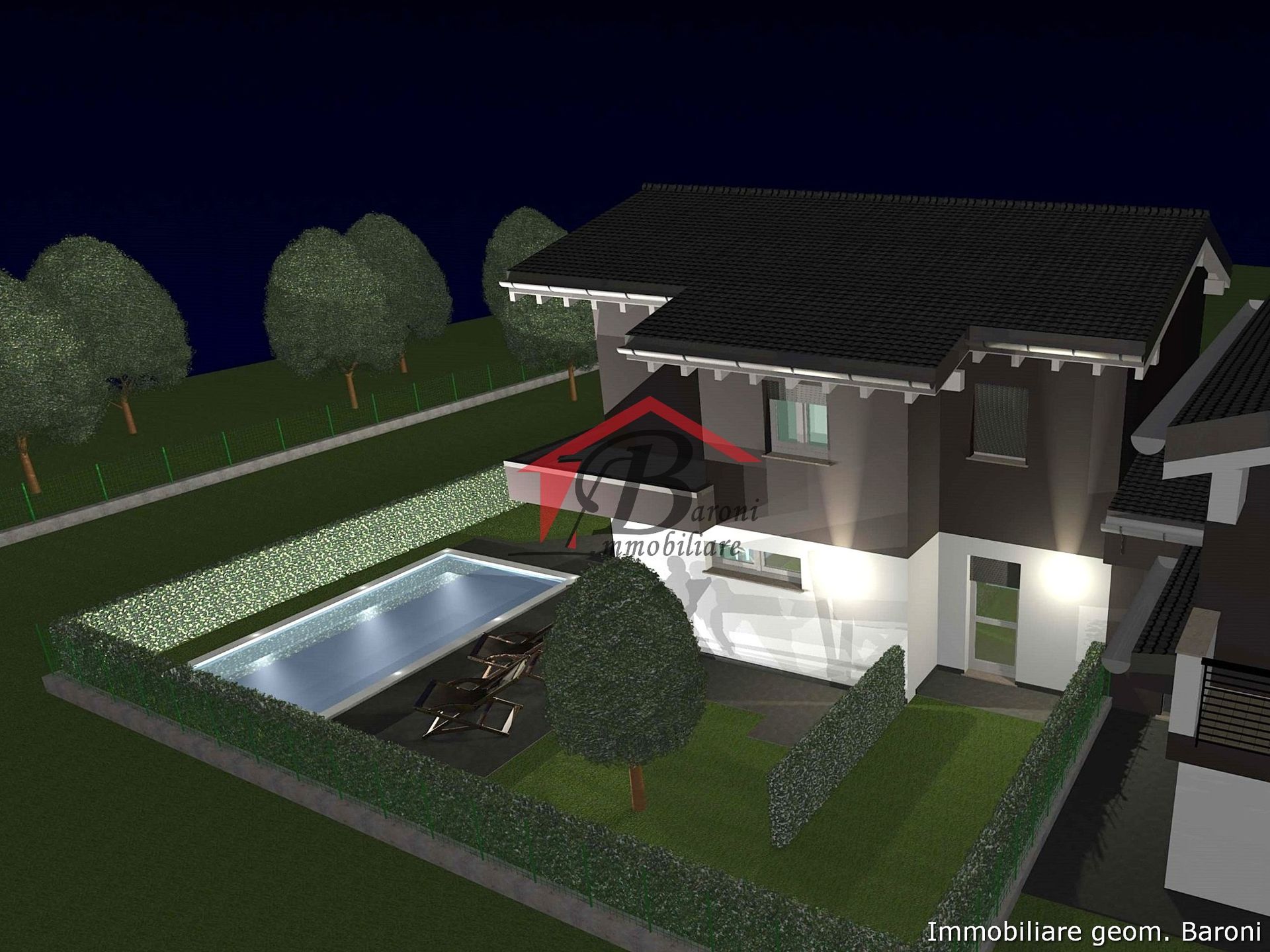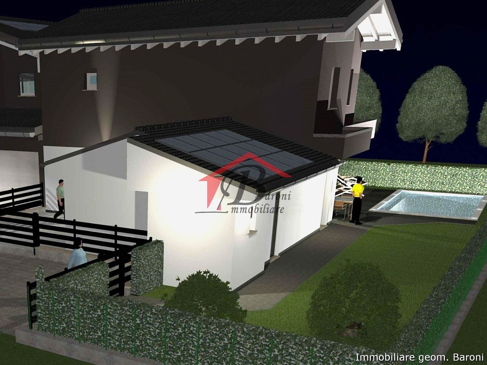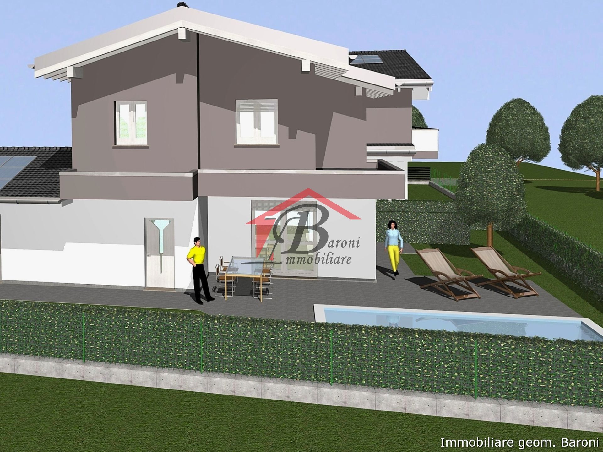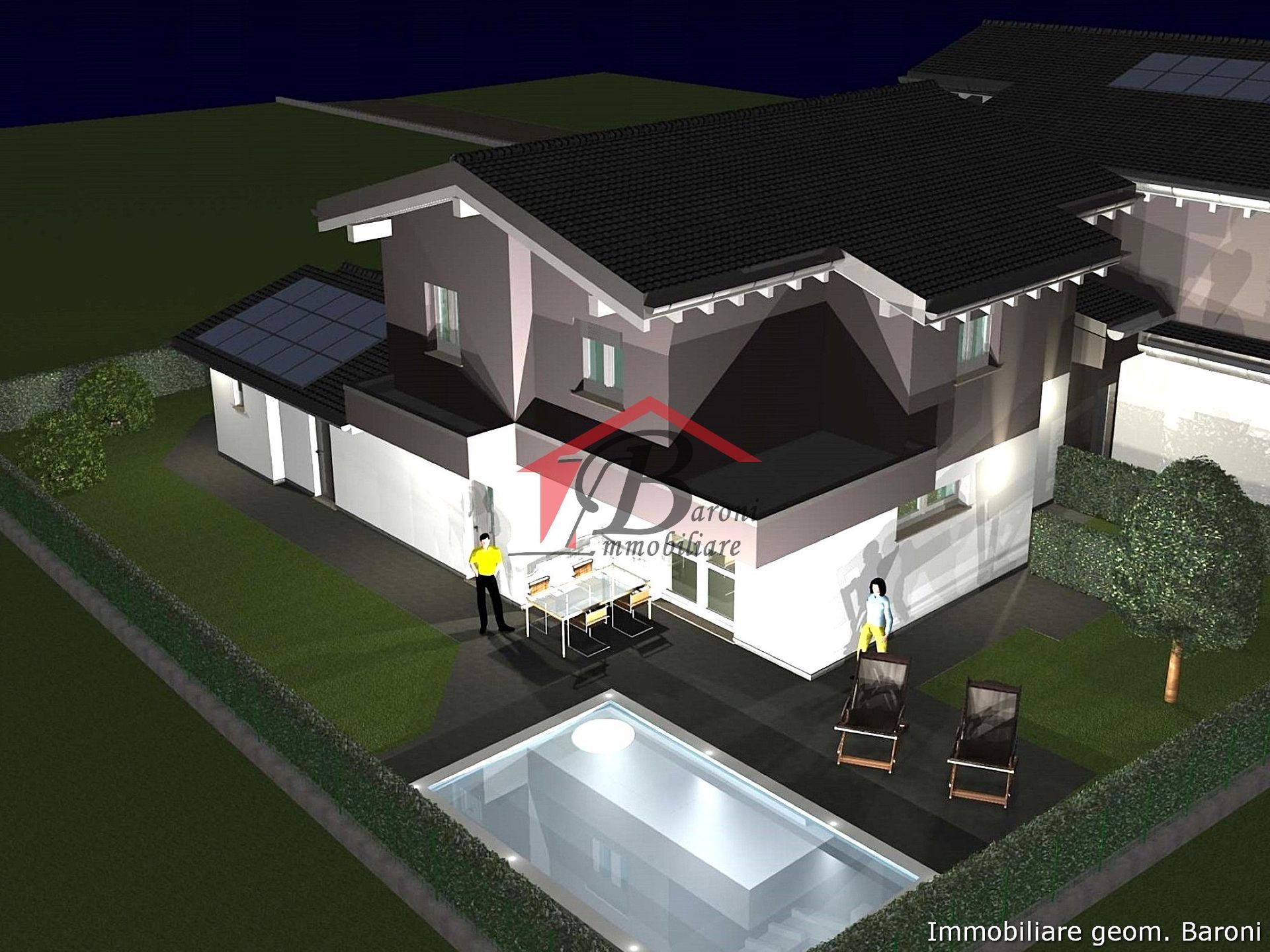 Villa semi-singola, moderna, ipotesi di prossima realizzazione, disposta su due livelli, ampio giardino privato e