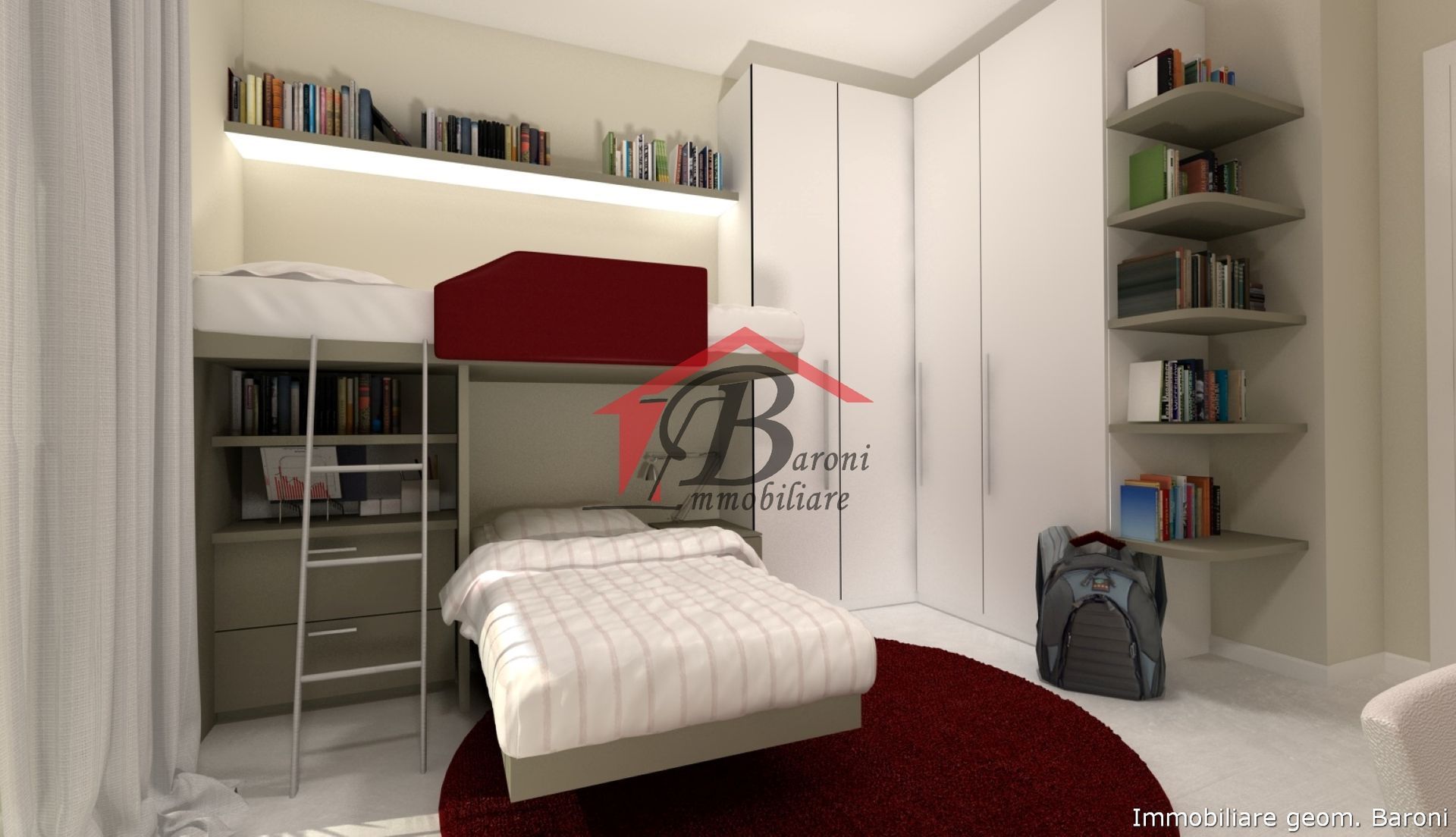 Piano terra: grande soggiorno, cucina a vista, disimpegno, ripostiglio, bagno padronale, altro bagno, tre spaziose camere e due balconi;